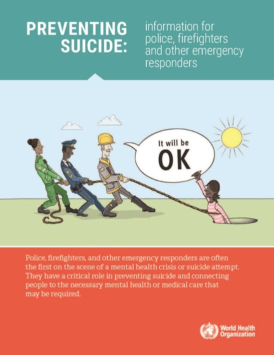 Not only health workers, but also first line responders such as police or firefighters, teachers, employers, jail and prison officers and others (often referred to as gatekeepers) who are likely to come into contact with someone at risk should be able to identify and support people who are at risk of suicide. To this end, WHO has produced a series of infographics and resources addressed to specific social and professional groups, including police, firefighters and other first line responders, so that people who are in distress receive the support they need.