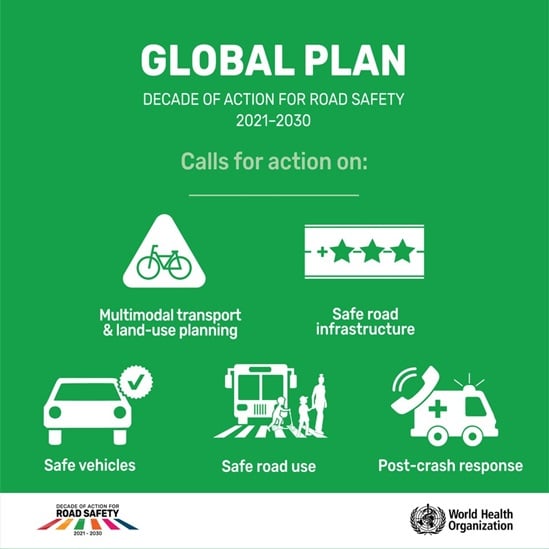 The Global Plan aligns with the Stockholm Declaration, by emphasizing the importance of a holistic approach to road safety, and calling on continued improvements in the design of roads and vehicles; enhancement of laws and law enforcement; and provision of timely, life-saving emergency care for the injured. The Global Plan also reflects the Stockholm Declaration’s promotion of policies to promote walking, cycling and using public transport as inherently healthy and environmentally sound modes of transport.